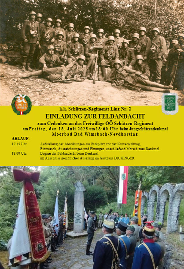 Feldandacht zum Gedenken an das Freiwillige OÖ Schützenregiment Nr.2 am 18.Juli 2025 im Morbad Wimsbach-Neydharting